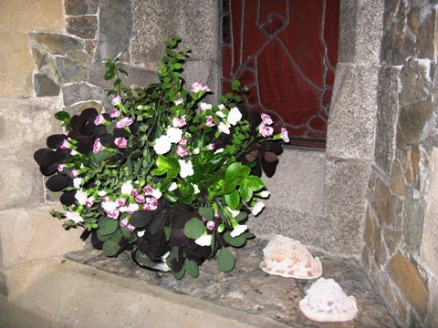 A beautiful floral arrangement next to the Holy Spirit window (Photo credit: Jenny Wright)